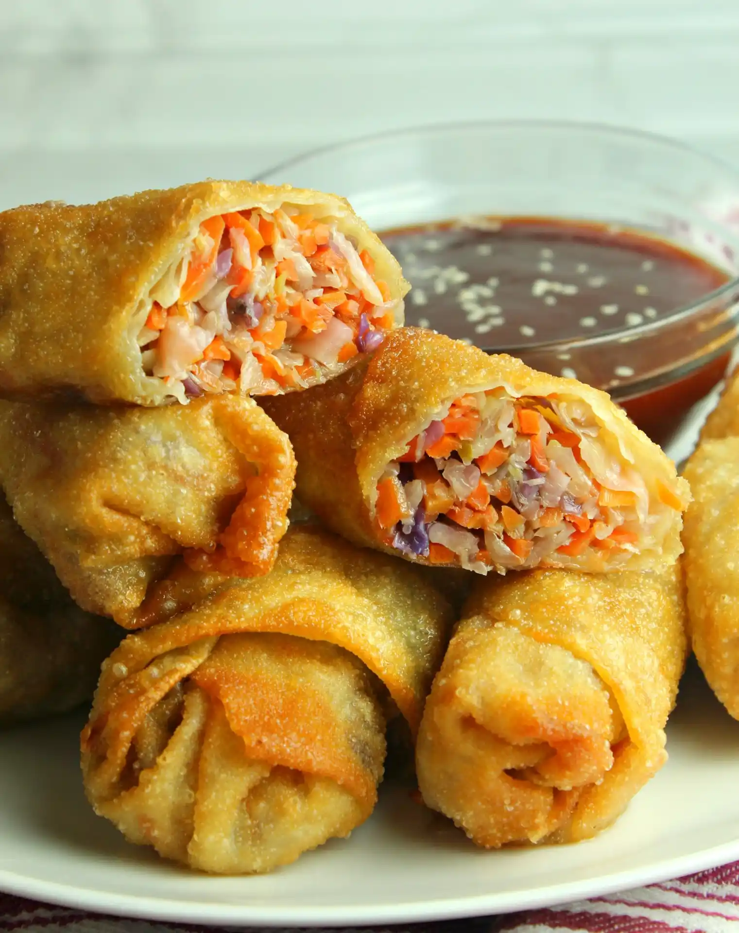 Four Crispy Vegetarian and Egg rolls with Sweet Chili Sauce